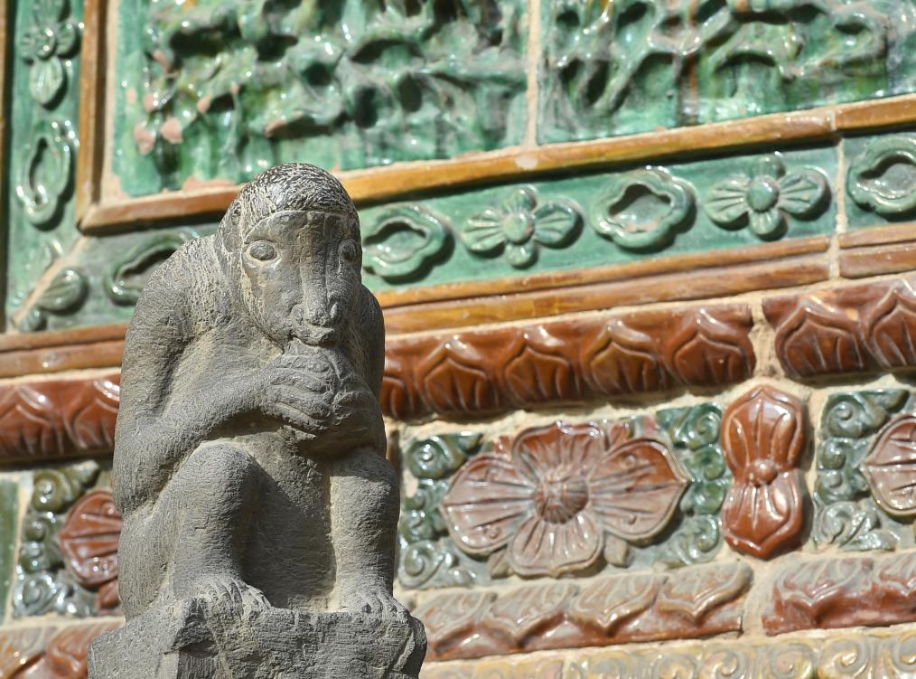这是山西省运城市解州关帝庙内与猴有关的石雕。