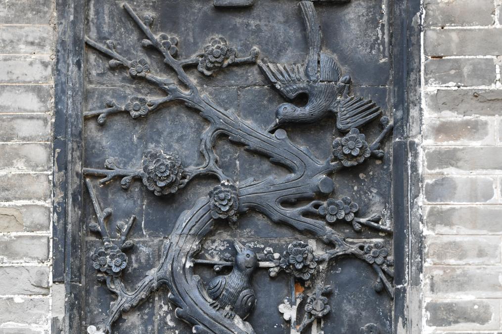这是12月11日在山西省祁县乔家大院拍摄的喜鹊砖雕。