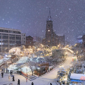12月4日,在韩国首尔,人们在雪中出行。新华社发(朴晋泽摄)