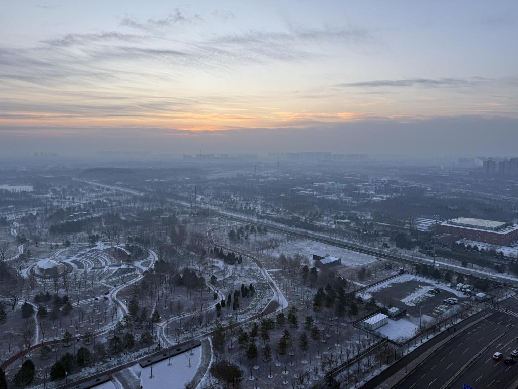 图为23日早晨拍摄的北京市朝阳区一处公园。新华社记者 田晨旭 摄
