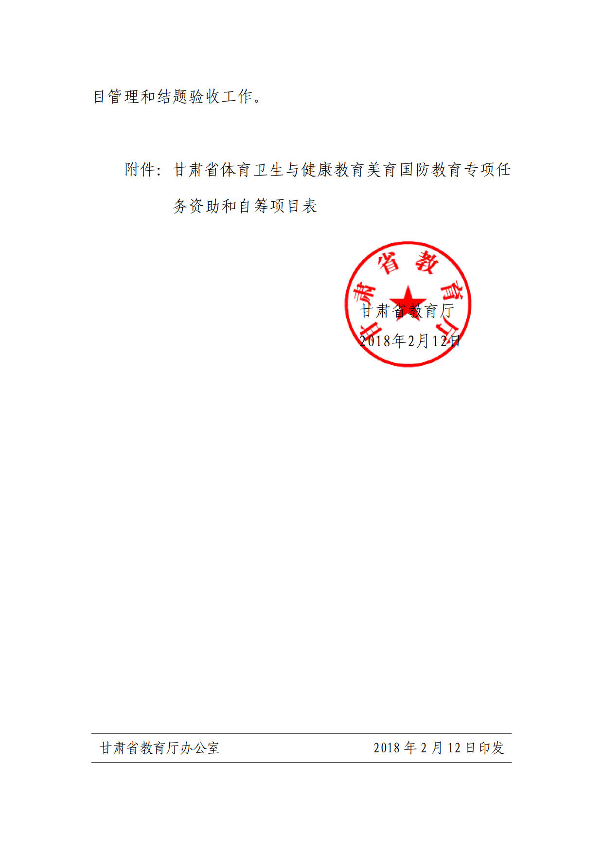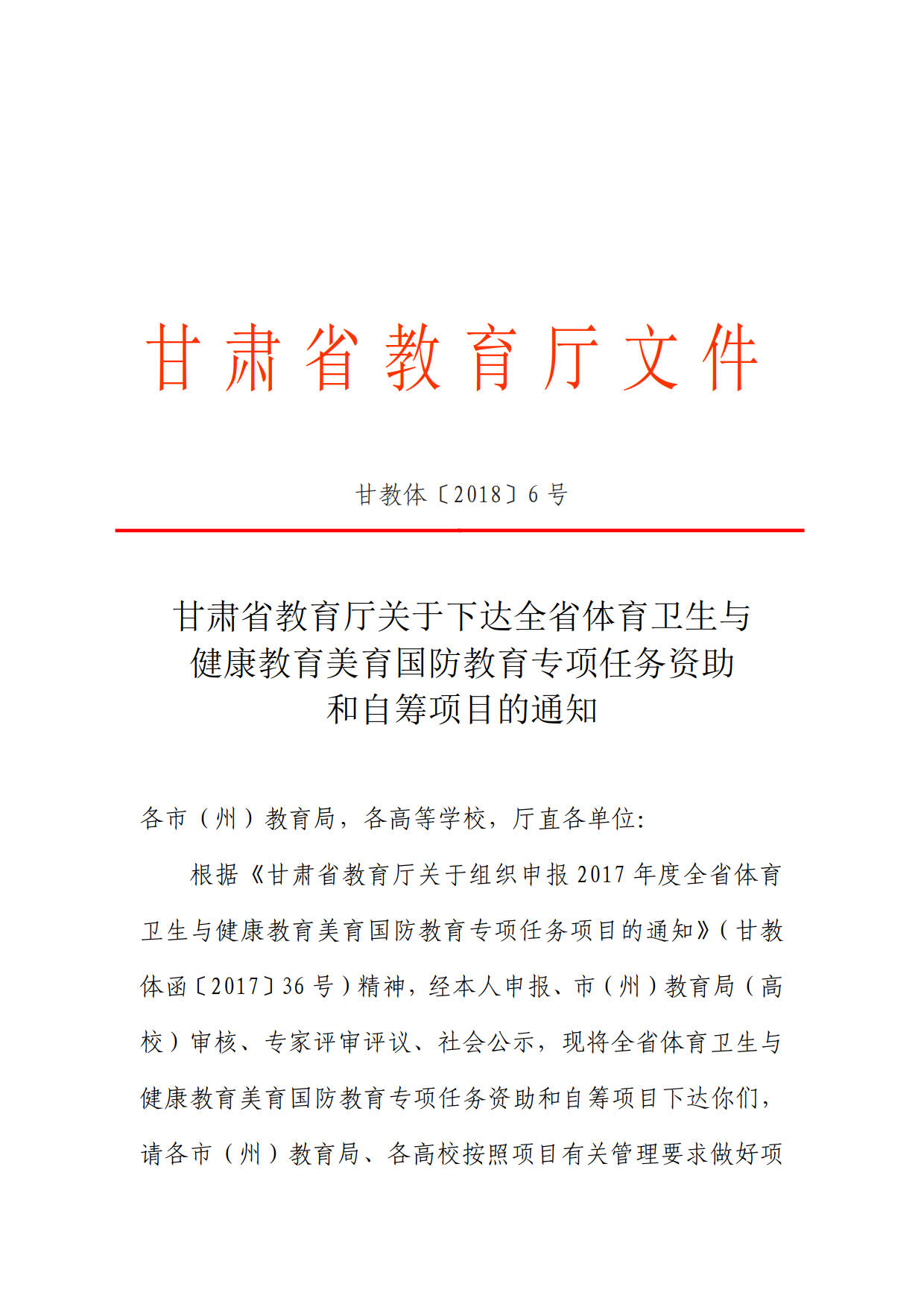 甘肅省教育廳關(guān)于下達(dá)全省體育衛(wèi)生與健康教育美育國(guó)防教育專(zhuān)項(xiàng)任務(wù)資助和自籌項(xiàng)目的通知-正文