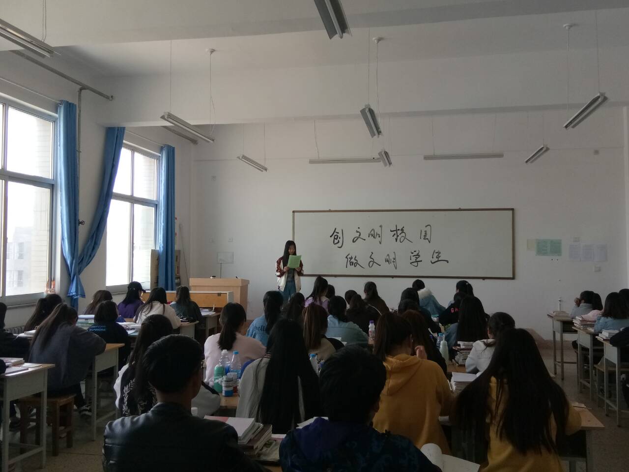 4月20日,人文藝術教育系組織全體教師學習了《中共武威職業(yè)學院委員會關于成立創(chuàng)建全國文明城市工作領導小組的通知》《武威職業(yè)學院創(chuàng)建全國文明城市三年規(guī)劃(2018-2020)》《武威職業(yè)學院創(chuàng)建全國文明城市2018年工作實施方案》文件精神,通過教研室活動,認真學習了《你我攜手 共創(chuàng)文明》倡議書,自覺遵守教師行為守則和管理規(guī)范,自覺維護辦公室環(huán)境,以實際行動踐行文明承諾,以模范行為影響身邊人、身邊事。學生通過主題班會,學習了《創(chuàng)文明校園 做文明學生》和《共同創(chuàng)建文明城市》倡議書,自覺愛護公物,不亂貼亂畫,不亂扔垃圾,不講粗話臟話,不隨地吐痰,不破壞公共設施,用實際行動踐行社會主義核心價值觀。