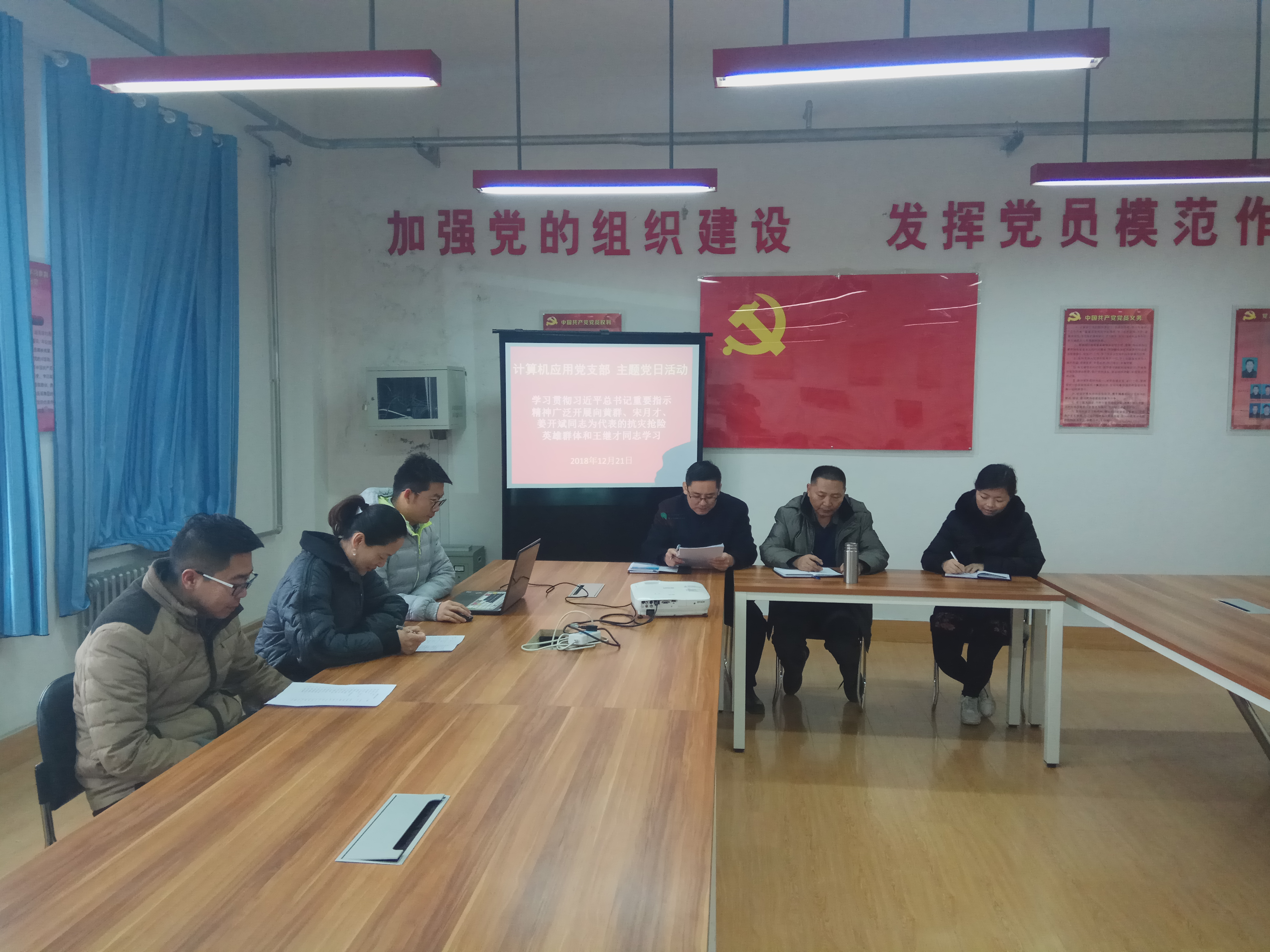 2018年12月21日,電子及網(wǎng)絡(luò)黨支部組織開(kāi)展“不忘初心、牢記使命——學(xué)習(xí)全國(guó)、全省優(yōu)秀共產(chǎn)黨員先進(jìn)事跡”主題黨日活動(dòng),電子及網(wǎng)絡(luò)黨支部全體黨員參加學(xué)習(xí)。