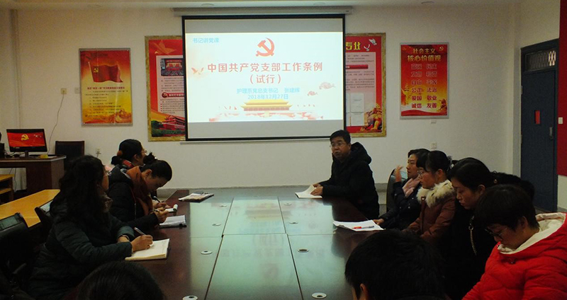 為進一步加強黨支部標準化建設(shè), 12月27日,護理系黨總支在明遠樓103黨員活動室開展學(xué)習(xí)活動,護理系黨總支書記張建輝以《中國共產(chǎn)黨支部工作條例(試行)》為題,為參會黨員們進行專題黨課輔導(dǎo),促進全體黨員對黨建工作的認識學(xué)習(xí)。