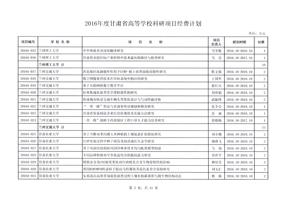 轉(zhuǎn)發(fā)甘肅省財(cái)政廳 教育廳文件 關(guān)于下達(dá)2016年度高校導(dǎo)師科研經(jīng)費(fèi)和“2011計(jì)劃”補(bǔ)助經(jīng)費(fèi)的通知