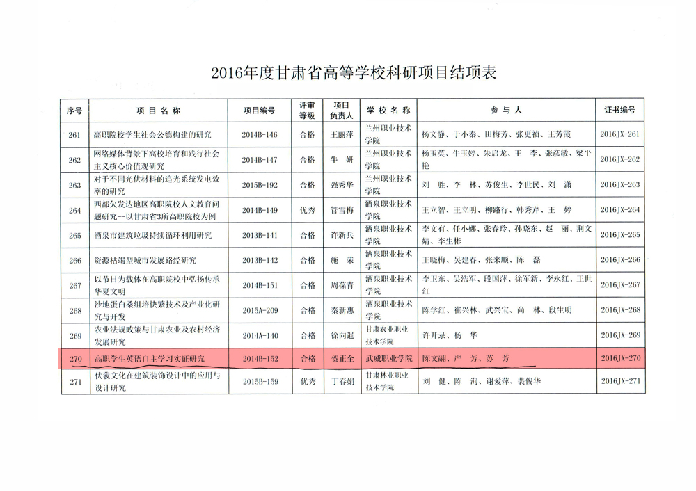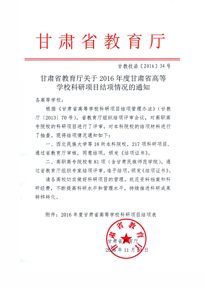 轉(zhuǎn)發(fā)甘肅省教育廳關(guān)于2016年度甘肅省高等學(xué)校科研項(xiàng)目結(jié)項(xiàng)情況的通知