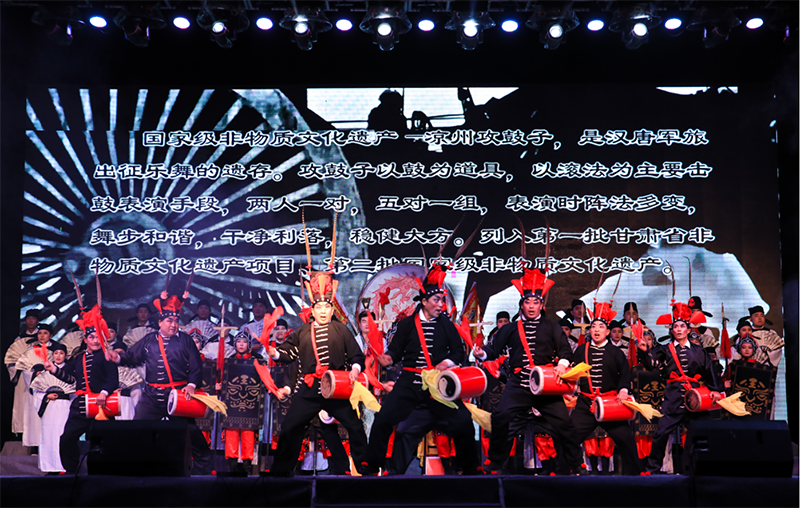 近年來,學(xué)院師生創(chuàng)作、改編了許多反映地方特色和校園生活主題的節(jié)目。其中晚會(huì)上由我院教師自編原創(chuàng)的大型吟誦舞臺(tái)劇《金戈鐵馬入夢(mèng)涼州》邀請(qǐng)了國(guó)家級(jí)非物質(zhì)文化遺產(chǎn)涼州攻鼓子助力表演,結(jié)合戲曲、舞蹈、器樂等形式,全方位展示了涼州文化深厚的底蘊(yùn)和鮮明的地域特色,涼州攻鼓子表演更是蕩氣回腸,讓現(xiàn)場(chǎng)師生充分領(lǐng)略了傳統(tǒng)文化的博大精深和獨(dú)特魅力。大學(xué)生藝術(shù)團(tuán)主持隊(duì)自編自演的詩(shī)歌朗誦《青春報(bào)告》,結(jié)合當(dāng)代大學(xué)生青春夢(mèng)想、歷史使命的創(chuàng)作和聲情并茂的演繹,體現(xiàn)了新青年對(duì)于理想與擔(dān)當(dāng)?shù)娜陆庾x。大學(xué)生藝術(shù)團(tuán)曲藝隊(duì)自導(dǎo)改編的相聲《新生入學(xué)指南》,以詼諧幽默的形式講解了大一新生入學(xué)后的趣味生活,贏得了新同學(xué)們的共鳴和陣陣掌聲。