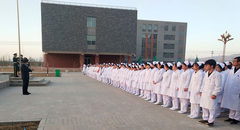 3月18日早上7點20分,護理系在新圖書館樓前廣場舉行了升旗儀式,護理系書記張建輝、主任韓曉萍及護理系1300多名師生參加了此次升國旗儀式。
