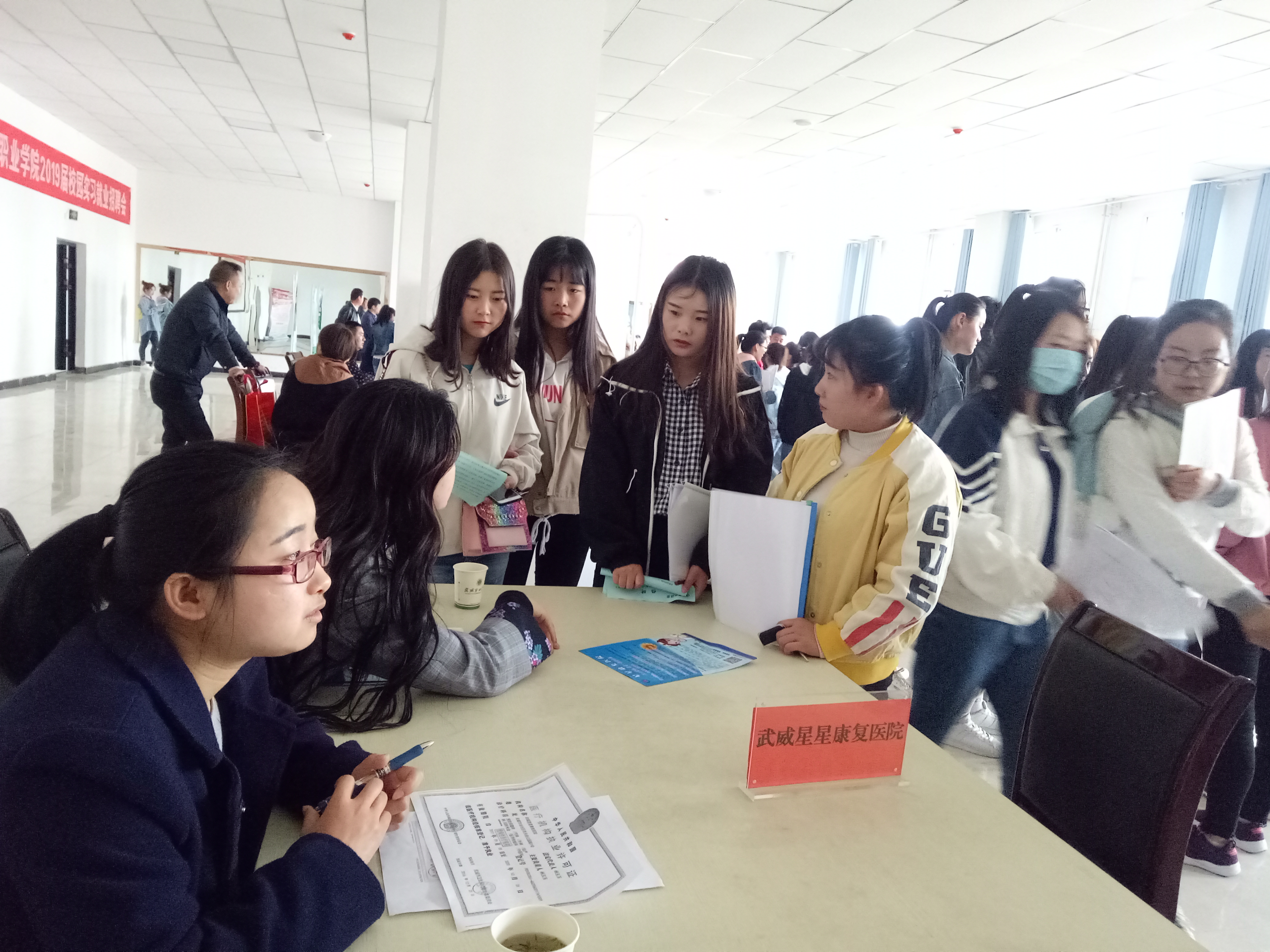 參加本次招聘會的共有來自省內(nèi)外醫(yī)療相關(guān)單位10家,包括東莞定遠(yuǎn)陶齒制品有限公司、康泰健美醫(yī)療科技(深圳)有限公司、武威遠(yuǎn)方藥業(yè)、武威市西藝義齒制作有限公司、?武威寶山口腔醫(yī)院、紅山窯衛(wèi)生院、武威星星康復(fù)醫(yī)院等共提供150多個就業(yè)崗位,基本滿足我系四個專業(yè)畢業(yè)的就業(yè)需求。