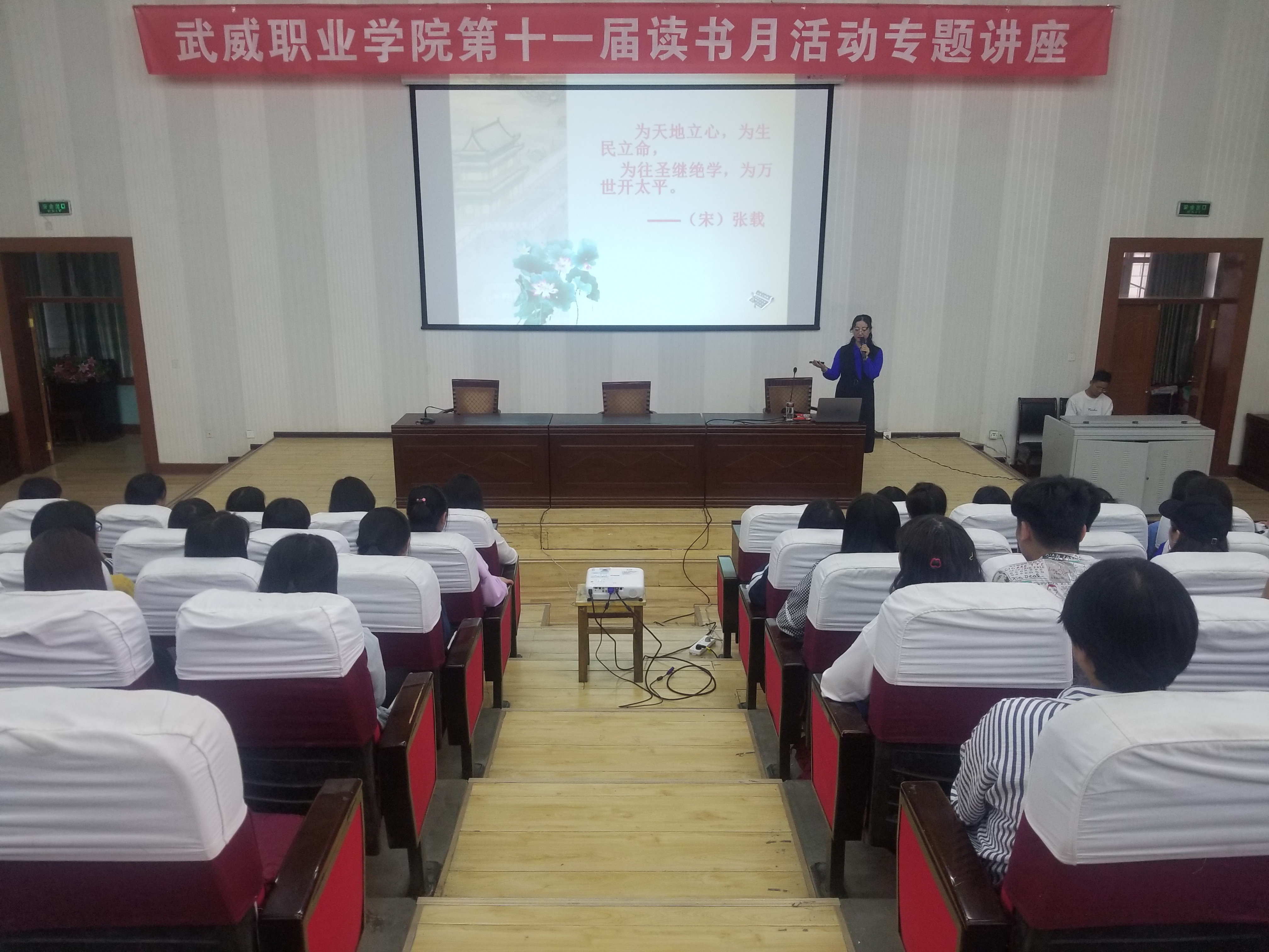 武威職業(yè)學院第十一屆讀書月活動專題講座在正德廳舉行。4月24日學院中文專業(yè)教授趙穎老師應邀進行了《走進國學》的專題講座,近300名師生參加了此次講座。