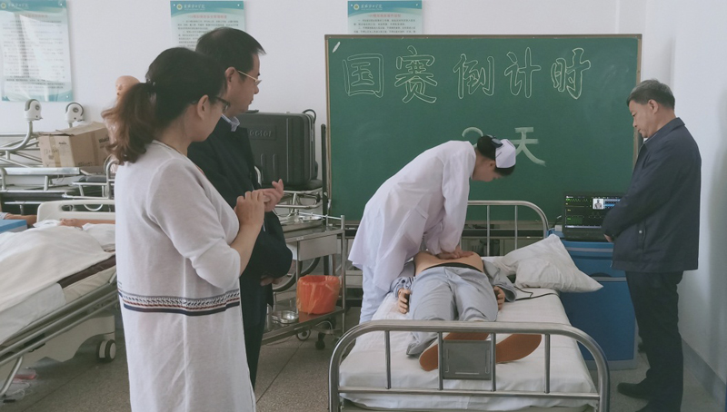 院領(lǐng)導(dǎo)高度重視此次比賽,全力支持大賽工作,時刻關(guān)注賽前訓(xùn)練情況。學(xué)院黨委書記趙明、副院長翟存祥、教務(wù)處處長仲生仁多次到訓(xùn)練現(xiàn)場觀看選手操作,并提出指導(dǎo)性的意見和建議。趙書記充分肯定了老師們的辛勤付出,要求輔導(dǎo)教師在訓(xùn)練中一定要堅持高標(biāo)準(zhǔn)、嚴(yán)要求;鼓勵選手發(fā)揮潛能,賽出水平,實現(xiàn)新的突破。護(hù)理系成立了以黨總支書記張建輝、系主任韓曉萍牽頭,由專業(yè)教師組成大賽輔導(dǎo)小組,認(rèn)真解讀競賽規(guī)程,周密安排訓(xùn)練計劃,強化理論知識,細(xì)化操作項目,力爭在此次大賽中取得好成績。