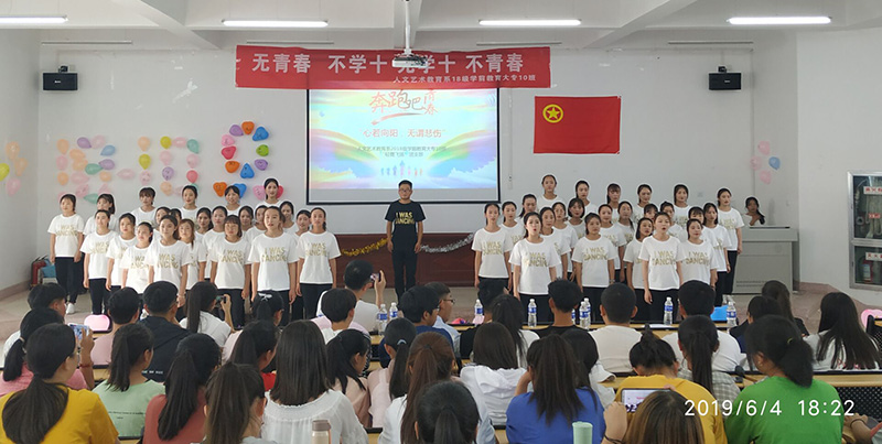 6月4日下午5點(diǎn)20分,人文藝術(shù)教育系2018級(jí)學(xué)前教育大專(10)班在勵(lì)勤樓階梯教室開展了活力團(tuán)支部活力展示。
