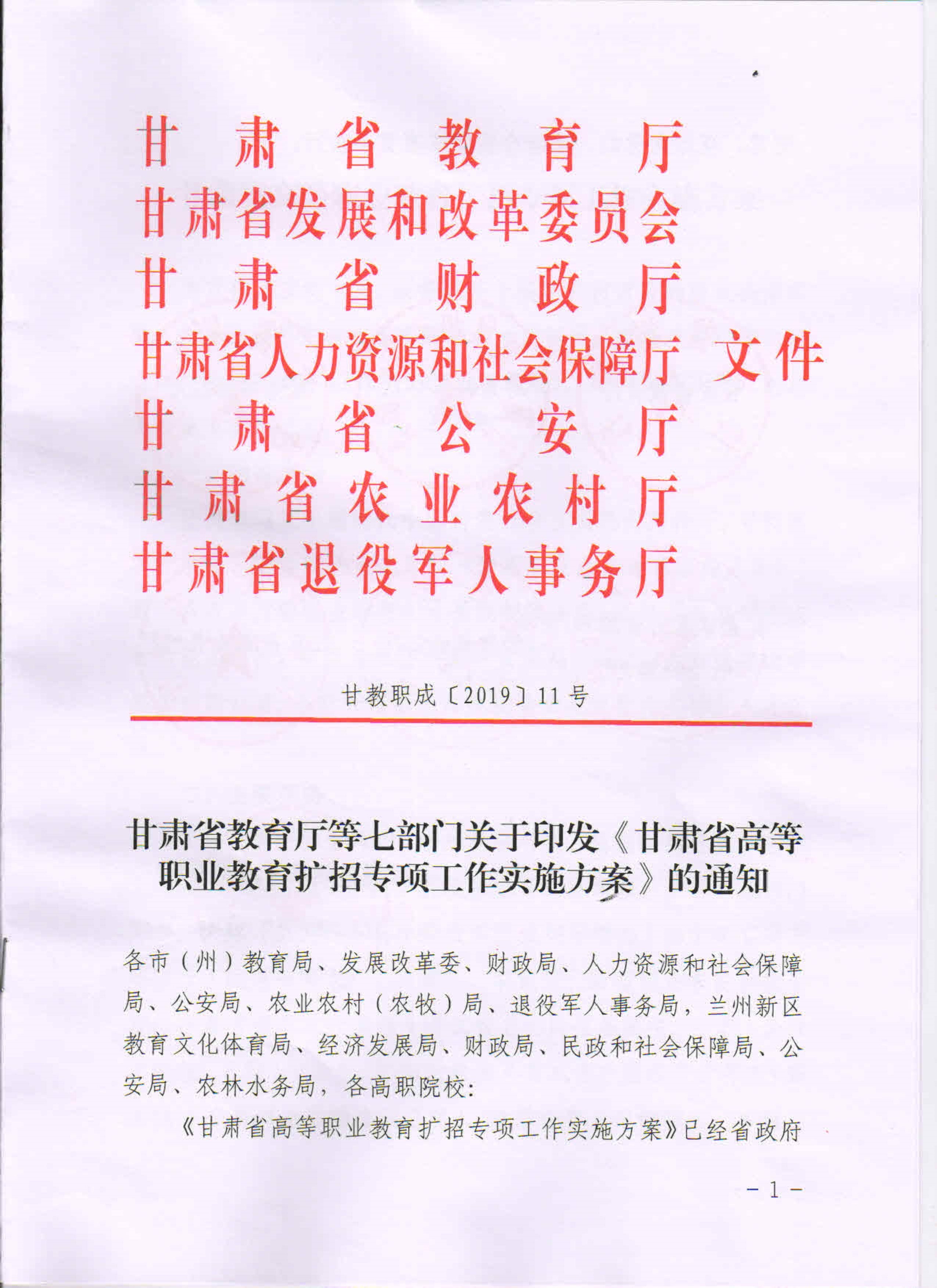 19年關(guān)于做好2019年甘肅省高等職業(yè)教育擴(kuò)招專項(xiàng)考試招生工作的通知