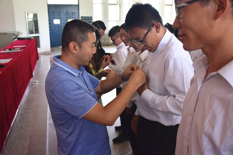 羅小勇為新黨員佩戴黨徽,并代表學院黨委對新入黨的56名預備黨員表示熱烈的祝賀和歡迎。他強調(diào),作為預備黨員,一要恪守入黨誓詞,踐行莊嚴承諾,堅定不移地從思想和行動上與黨組織保持高度一致,牢固樹立“四個意識”,增強“四個自信”,堅決做到“兩個維護”,激發(fā)奮發(fā)向上的學習、生活和工作熱情,努力營造踏實務(wù)實的學習氛圍;二要充分發(fā)揮先鋒模范作用,在各自的學習生活中體現(xiàn)黨的先進性,成為同學中的旗幟標桿力量;三要牢記全心全意為人民服務(wù)的宗旨,努力實踐,立志成為中國特色社會主義事業(yè)奮斗終身的有用人才。