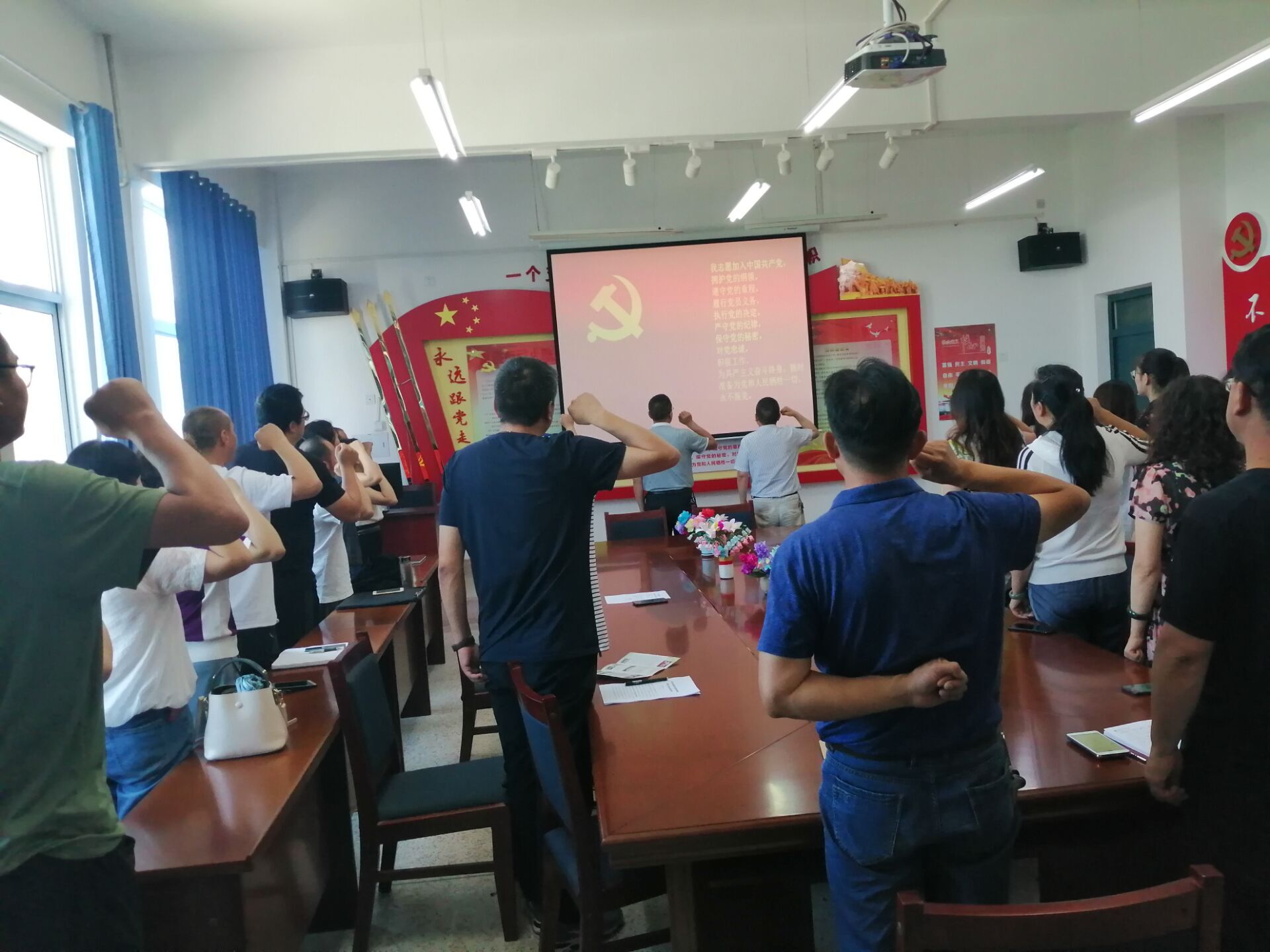 黨總支書記胡靜峰宣讀了中國共產(chǎn)黨預備黨員名單。在胡靜峰同志帶領下預備黨員面向黨旗進行了入黨宣誓,其他黨員重溫了入黨誓詞。預備黨員劉心代表預備黨員進行了表態(tài)發(fā)言。