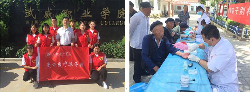 2019年暑假期間,武威職業(yè)學(xué)院護理系積極響應(yīng)團中央、院團委對青年大學(xué)生暑期“三下鄉(xiāng)”社會實踐活動的號召,組織10名骨干學(xué)生成立了“愛心醫(yī)療服務(wù)團”,7月11始,由指導(dǎo)教師楊棟帶隊趕赴甘肅省武威市涼州區(qū)高壩鎮(zhèn)中心敬老院、古浪縣黃花灘鎮(zhèn)綠洲扶貧移民點、武威市涼州區(qū)高壩鎮(zhèn)蜻蜓村、武威市黃羊鎮(zhèn)五連扶貧移民點(榮昌村)、武威市涼州區(qū)福利路社區(qū)、武威市涼州區(qū)華閏庭院、武威市社會福利院等多地開展了為期七天的醫(yī)療社會實踐活動。