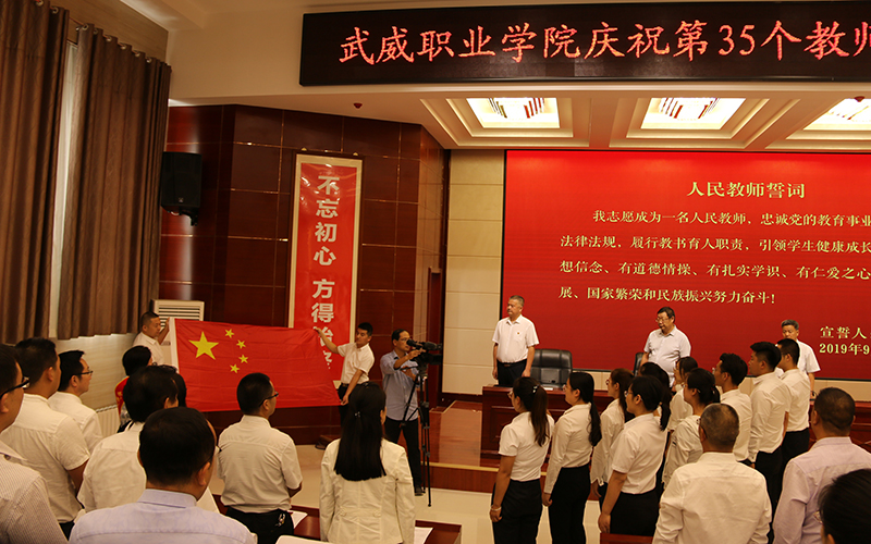以“慶祝新中國七十華誕 弘揚(yáng)新時(shí)代尊師風(fēng)尚”為主題的教師節(jié)慶祝大會在莊嚴(yán)的《國歌》聲中拉開帷幕。學(xué)院黨委書記、院長趙明帶領(lǐng)全體教師重溫了教師誓詞,鏗鏘有力的誓詞、莊嚴(yán)的承諾,進(jìn)一步堅(jiān)定了廣大教師立德樹人的理想和信念。黨委副書記翟存祥領(lǐng)學(xué)了高校教師行為準(zhǔn)則,對高校教師行為提出了要求。