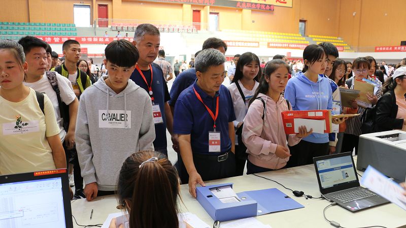 學院安排專車前往武威火車站、汽車站,為新生及家長提供全天候接站服務,并為送行家長專設了休息區(qū)。安保人員指揮車輛有序停放,保障安全有序的校園環(huán)境。工作人員引導新生辦理入校手續(xù),報到、繳費、入班、物品發(fā)放等各個環(huán)節(jié)有條不紊、高效暢通。體育館的電子屏上不斷播放學院宣傳片、大型公益短片,增強了新生及家長對學院的了解、認可和熱愛。為幫助家庭經(jīng)濟困難學生順利入學,學院還設立了“綠色通道”服務點,為家庭經(jīng)濟困難學生辦理緩交(減免)學費和生源地信用助學貸款登記手續(xù)。