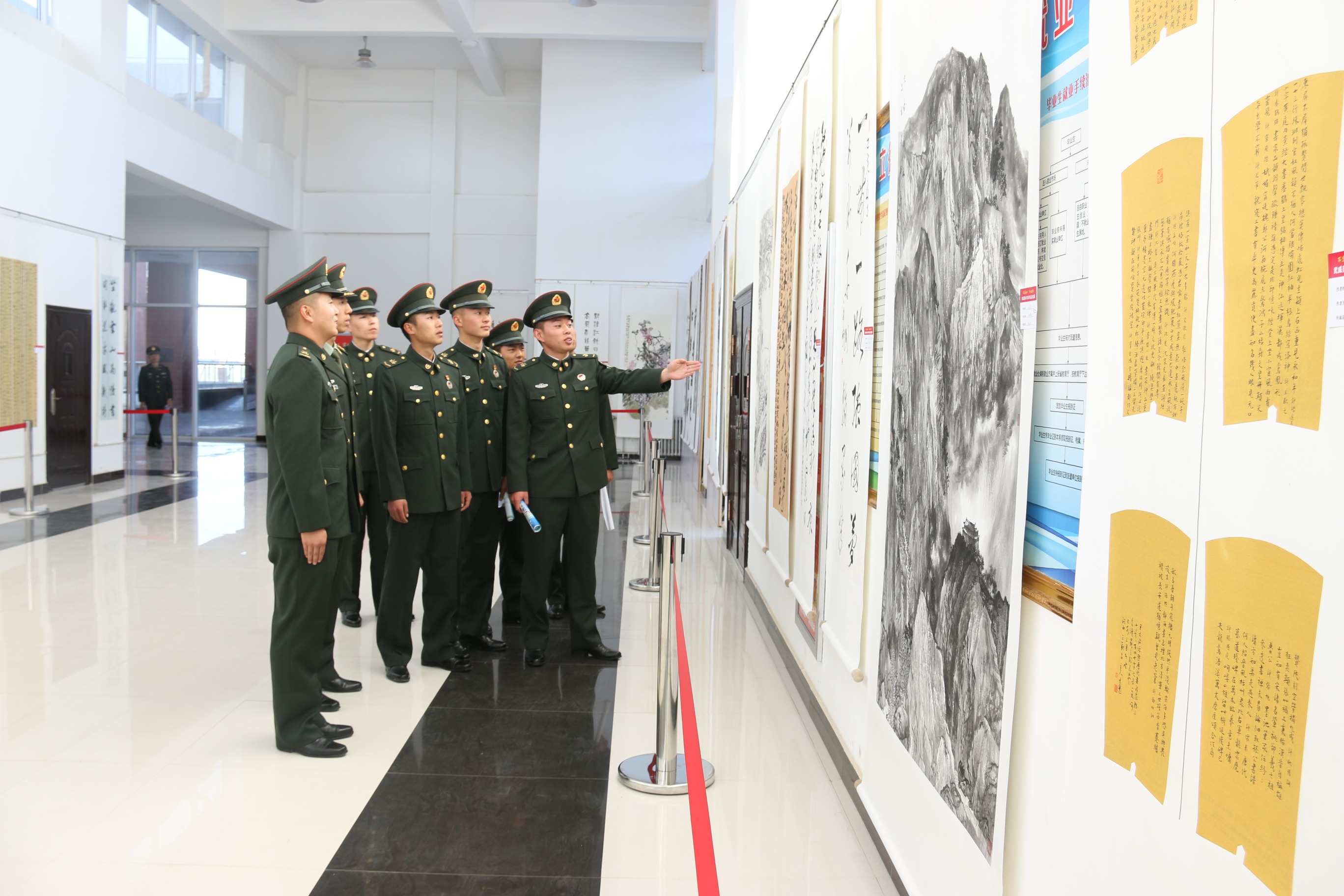 美術書法作品交流展豐富了官兵們的精神文化生活、陶冶了情操、提升了人文藝術素養(yǎng),也加強了學院與部隊之間的交流合作,促進了學院軍民共建工作。何毅說,近年來,學院認真開展國防教育和大學生征兵入伍工作,大力宣傳動員、積極營造濃厚氛圍,今年有28名優(yōu)秀學子應征入伍。學院將繼續(xù)發(fā)揮教育科研優(yōu)勢,加強與駐地部隊在職業(yè)培訓、技能鑒定、文化活動、繼續(xù)教育等方面的合作,認真做好雙擁共建、國防教育和征兵入伍工作,力爭與部隊官兵一道,譜寫軍民融合發(fā)展新篇章。