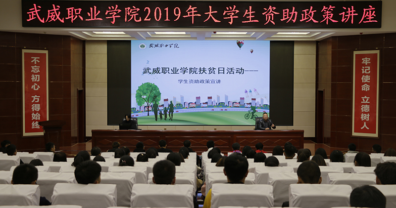 10月17日是第六個(gè)國(guó)家扶貧日。當(dāng)天,我院學(xué)生工作處和工會(huì)在大學(xué)生活動(dòng)中心菁英廳聯(lián)合組織舉行了“武威職業(yè)學(xué)院2019年大學(xué)生資助政策講座”,學(xué)生資助管理中心張海霞老師做講座。中科低碳新能源技術(shù)學(xué)院學(xué)生代表和學(xué)院各系學(xué)生代表共220名參加了活動(dòng),講座活動(dòng)由工會(huì)主席金玉龍主持。
