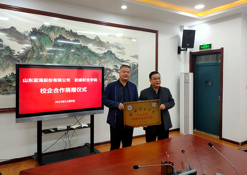 在捐贈(zèng)儀式上,楊兆永總經(jīng)理介紹了山東藍(lán)海股份有限公司做了介紹,雙方在人才需求、專業(yè)課程設(shè)置開(kāi)發(fā)、雙師型師資培養(yǎng)、教學(xué)組織實(shí)習(xí)質(zhì)量評(píng)估、就業(yè)服務(wù)等多方面合作近十年,已經(jīng)將校企雙方緊密聯(lián)合在一起,同時(shí)希望今后繼續(xù)不斷在師資隊(duì)伍培養(yǎng)、人才培養(yǎng)、教育教學(xué)繼續(xù)加強(qiáng)合作,實(shí)現(xiàn)雙贏,共同發(fā)展。