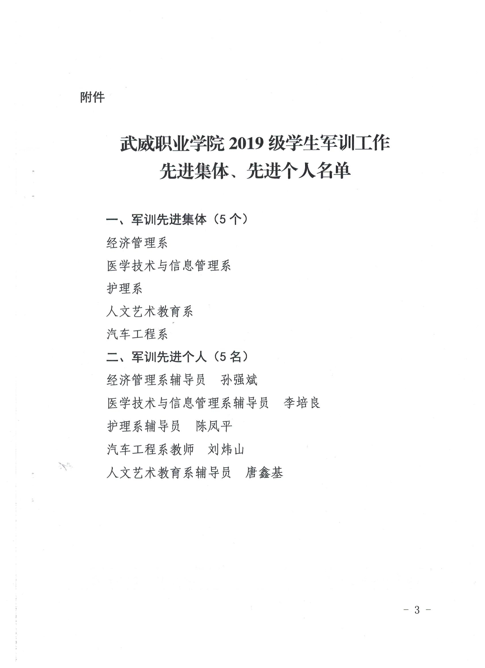 武威職業(yè)學院關(guān)于表彰2019級學生軍訓工作軍訓標兵的決定