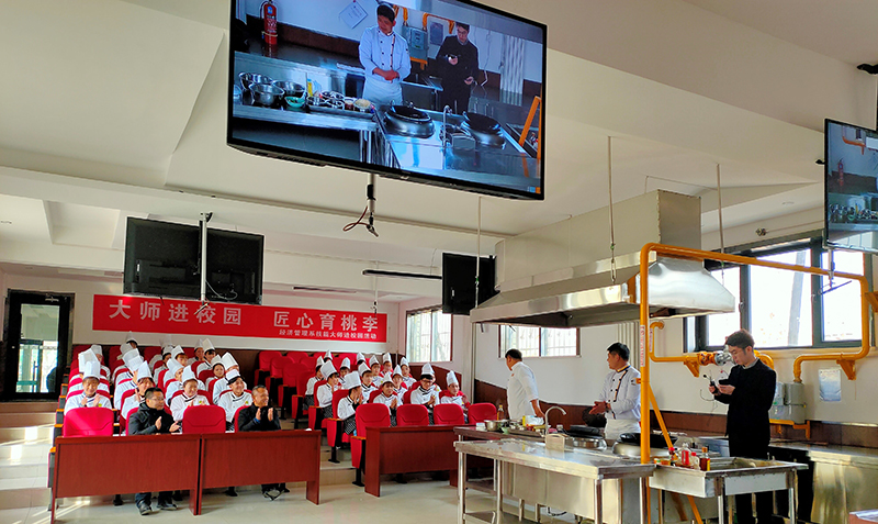 2019年12月13日,王品(中國(guó))餐飲有限公司西安店主廚畢朝威,12月26日,山東藍(lán)海集團(tuán)大廚郭玉忠分別為經(jīng)濟(jì)管理系烹調(diào)工藝與營(yíng)養(yǎng)專業(yè)120多名學(xué)生進(jìn)行鵝肝制作、果盤制作、面點(diǎn)制作、熱菜制作的廚藝表演,并在現(xiàn)場(chǎng)與系部領(lǐng)導(dǎo)交流、對(duì)學(xué)生分享廚藝心得和技術(shù)要領(lǐng)。