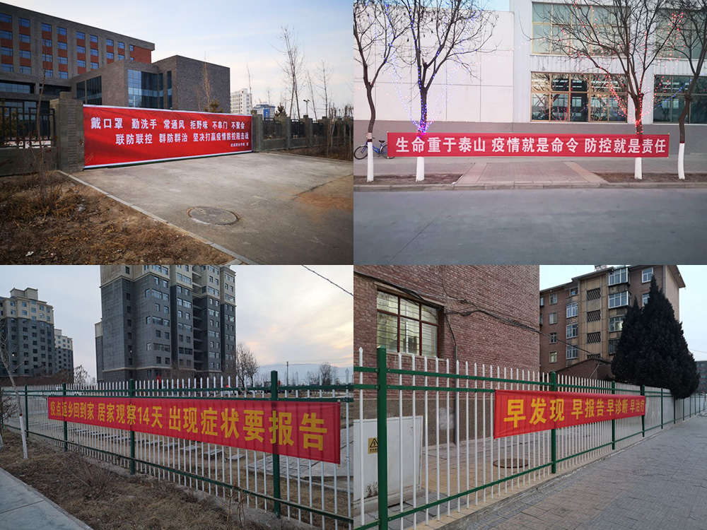 學(xué)院面向師生和社會人員,加強疫情防控內(nèi)外宣傳。在校園圍墻醒目位置設(shè)置內(nèi)容為:“戴口罩、勤洗手、常通風(fēng)、拒野味、不串門、不聚會”,“聯(lián)防聯(lián)控、群防群治、堅決打贏疫情防控阻擊戰(zhàn)”等宣傳標(biāo)語;在校園內(nèi)、家屬區(qū)等地顯著位置設(shè)置:“生命重于泰山、疫情就是命令、防控就是責(zé)任”,“重科學(xué)、聽官宣、不信謠、不傳謠”,“疫點返鄉(xiāng)回到家、居家觀察14天、出現(xiàn)癥狀要報告”,“早發(fā)現(xiàn)、早報告、早診斷、早治療”等宣傳標(biāo)語、橫幅。通過線上線下、校內(nèi)校外全方位教育、宣傳、號召、引導(dǎo),營造了師生和社會人員高度重視、科學(xué)嚴(yán)謹(jǐn)、從我做起、同舟共濟(jì)嚴(yán)格防控疫情的濃厚氛圍和戰(zhàn)勝疫情的堅定信心,為早日打贏疫情防控戰(zhàn)凝聚了共識、匯聚了強大的精神力量。