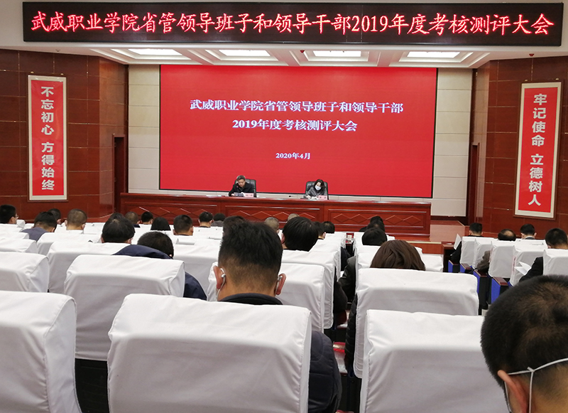按照省委考核工作安排,4月1日上午,武威職業(yè)學(xué)院2019年度省管領(lǐng)導(dǎo)班子和領(lǐng)導(dǎo)干部考核工作會議在大學(xué)生活動中心菁英廳召開。省委第三考核組組長、省委組織部干部三處四級調(diào)研員雍蕭,考核組成員黃曉峰、馬振坤、景誠、陶永超、王彤一行6人出席會議。學(xué)院領(lǐng)導(dǎo)班子成員,副科級及以上中層干部代表,副高級及以上職稱人員代表,人大代表、政協(xié)委員、民主黨派和教職工代表參加會議。學(xué)院黨委書記、院長趙明主持會議。