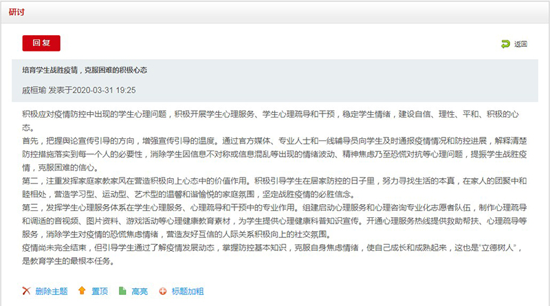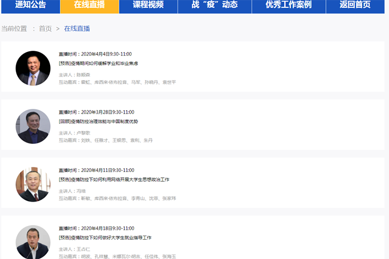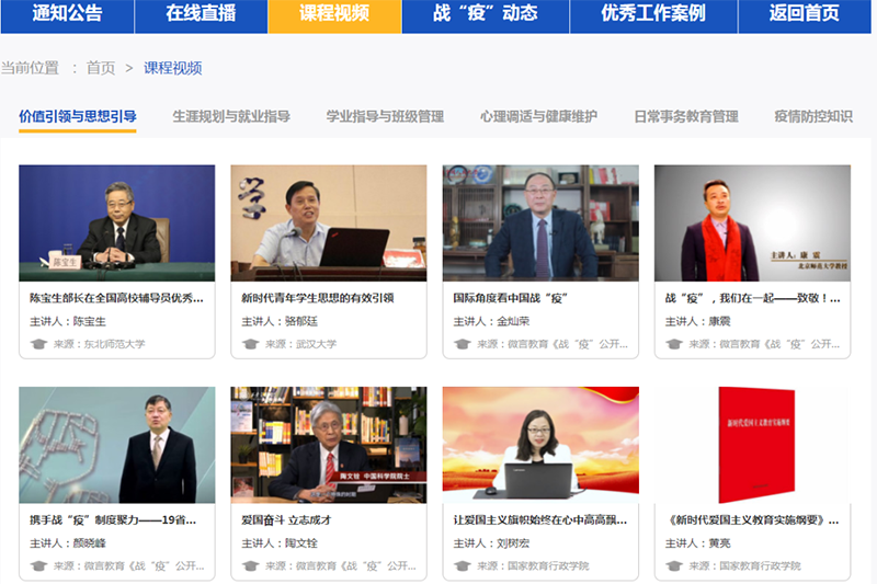為推進(jìn)當(dāng)前教育系統(tǒng)疫情防控和學(xué)生思想政治教育工作,由教育部主辦,高校思想政治工作隊(duì)伍培訓(xùn)研修中心承辦的“共抗疫情顯擔(dān)當(dāng),愛(ài)國(guó)力行育新人”全國(guó)高校輔導(dǎo)員網(wǎng)絡(luò)培訓(xùn)示范班開(kāi)班。