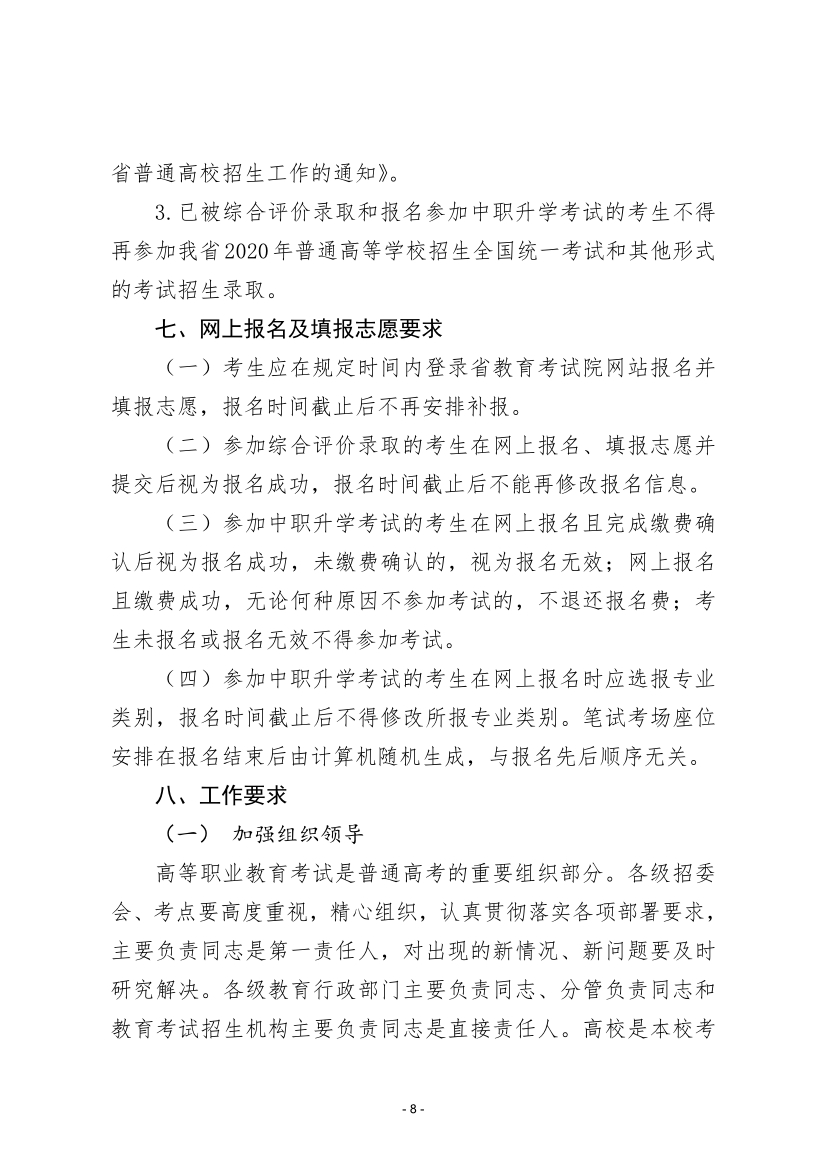 關(guān)于印發(fā)《2020年全省高等職業(yè)教育考試招生工作實施方案》的通知