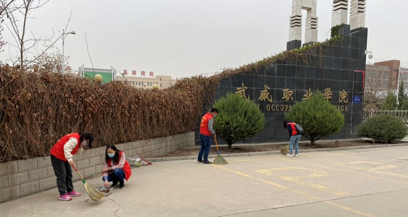 為扎實(shí)開展“三整治”“三提升”行動(dòng),有效改善城區(qū)環(huán)境,進(jìn)一步提升校園品質(zhì),建設(shè)文明校園,助力全國文明城市創(chuàng)建,為師生返校創(chuàng)造干凈、整潔、衛(wèi)生的學(xué)習(xí)工作和生活環(huán)境。按照涼州區(qū)城市管理委員會(huì)通知,結(jié)合學(xué)院實(shí)際,4月15日起,學(xué)院后勤處經(jīng)過排查,組織教職工及保潔工作人員全面開展校園“清潔亮妝”行動(dòng)。