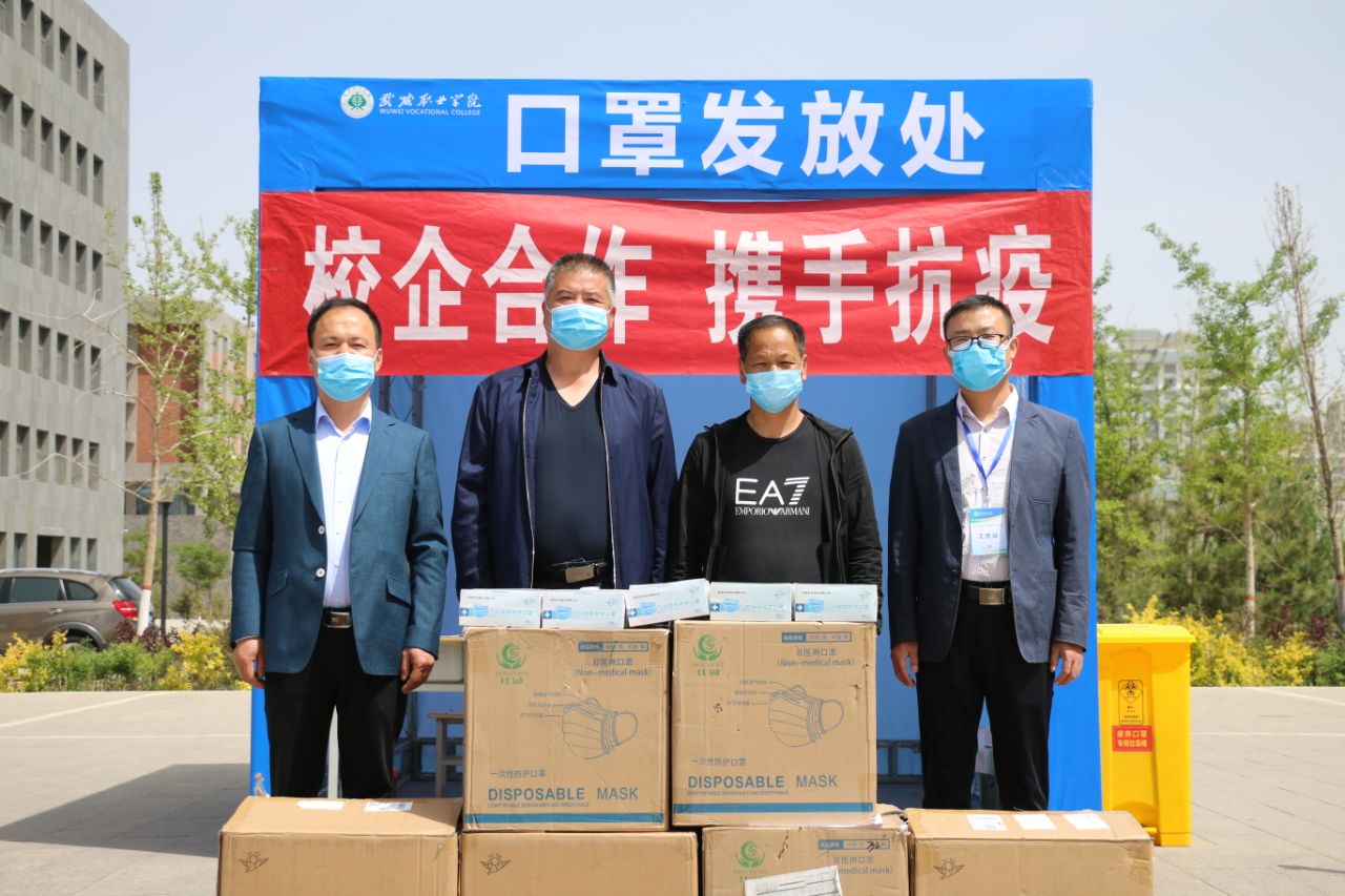 5月14日,學(xué)生返校報(bào)到第一天,武威華瑞服裝公司向?qū)W院捐贈(zèng)一次性防護(hù)口罩10000個(gè),遮陽棚20頂,助力學(xué)生返校報(bào)到工作。簡短的捐贈(zèng)儀式在報(bào)到現(xiàn)場舉行,副院長王守云,學(xué)工處、保衛(wèi)處負(fù)責(zé)人代表學(xué)院接收捐贈(zèng)物資。