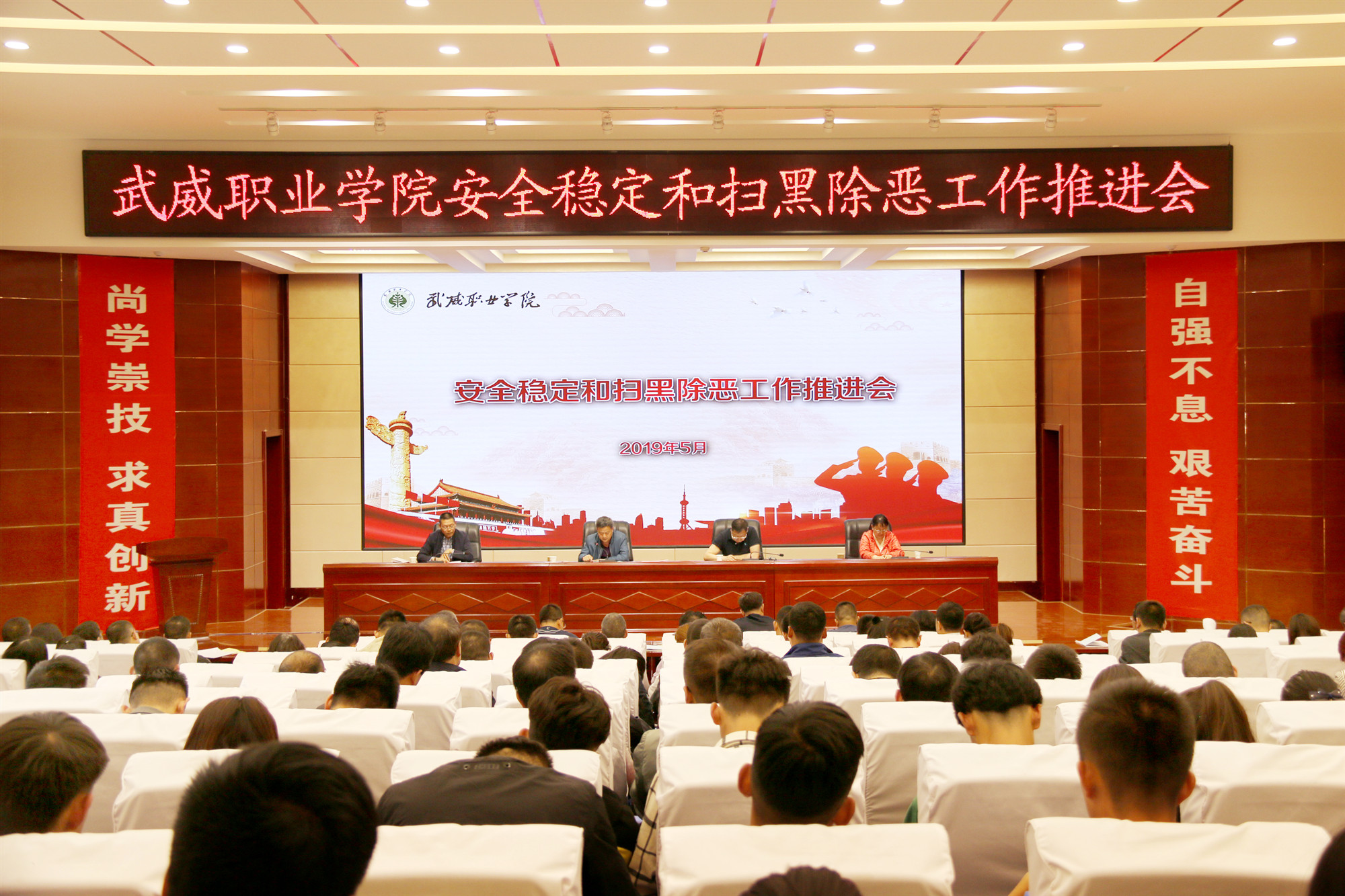5月27日下午,學(xué)院安全穩(wěn)定和掃黑除惡工作推進(jìn)會(huì)在大學(xué)生活動(dòng)中心菁英廳召開,黨委書記、院長(zhǎng)趙明,紀(jì)委書記張富國(guó),副院長(zhǎng)王永緒、田迎春出席會(huì)議,各部門、單位負(fù)責(zé)人、安全信息員、輔導(dǎo)員、班主任、團(tuán)學(xué)干部參加了會(huì)議。會(huì)議由趙明主持。
