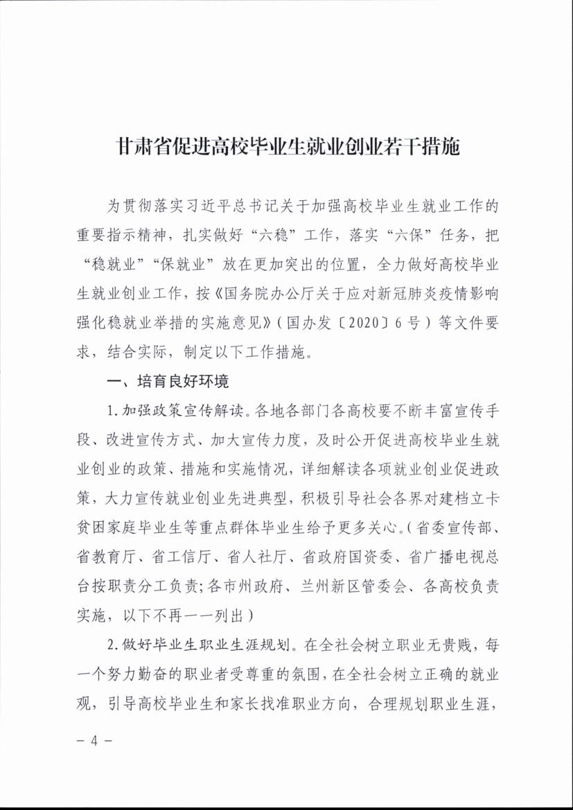 甘肅省教育廳等七部門(mén)關(guān)于印發(fā)《甘肅省促進(jìn)高校畢業(yè)生就業(yè)創(chuàng)業(yè)若干措施》的通知