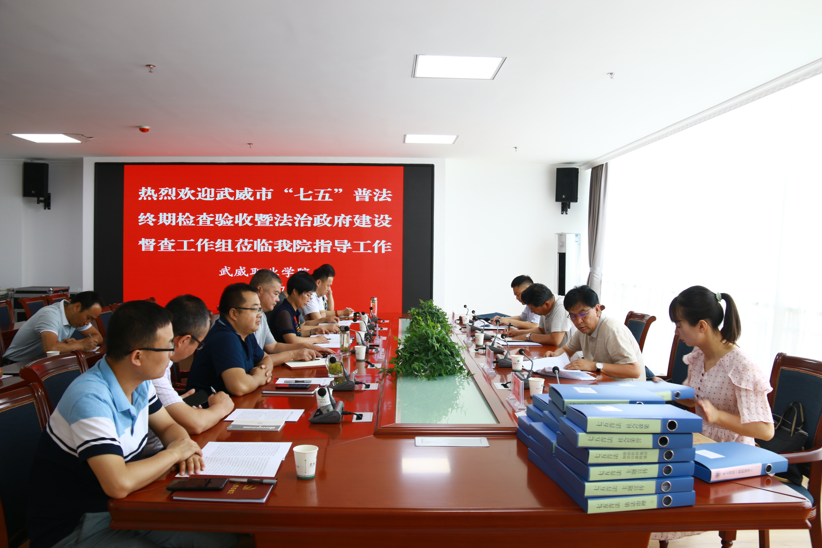 7月7日上午,武威市“七五”普法終期檢查驗收第五督察組成員、武威市委宣傳部副調(diào)研員韋國富,市司法局黨組成員、副局長傅瑞川,市公共法律服務中心主任劉文元,市司法局組織人事科科員羅瑩深入我院對“七五”普法工作開展情況和法治政府建設工作進行了終期驗收督查。學院黨委委員、副院長何毅、王守云,相關(guān)部門負責人參加檢查驗收。