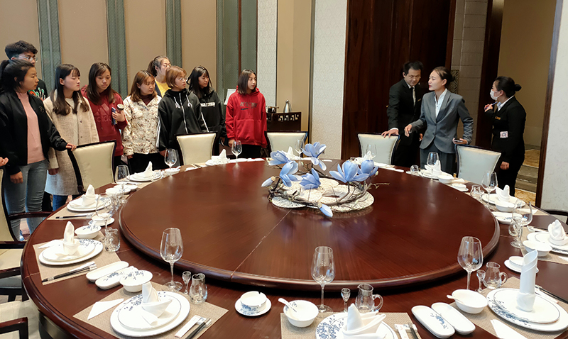 最后,姚盈老師對藍海御華大飯店提供的參觀機會和熱心招待表示感謝,并對此次參觀學(xué)習(xí)做了總結(jié);他表明作為學(xué)姐,羅列列能夠晉升為總監(jiān),這種成功正是得益于她堅持不懈的精神、扎實的專業(yè)理論以及高超的專業(yè)技能,并由此告訴同學(xué)們要敢于走進企業(yè),將所學(xué)課程運用到實踐當中,在學(xué)生時代就要培養(yǎng)自己堅強的毅力以及非凡的能力,只有這樣,才能在工作中以不變應(yīng)萬變,成長為能夠服務(wù)社會的優(yōu)秀青年!