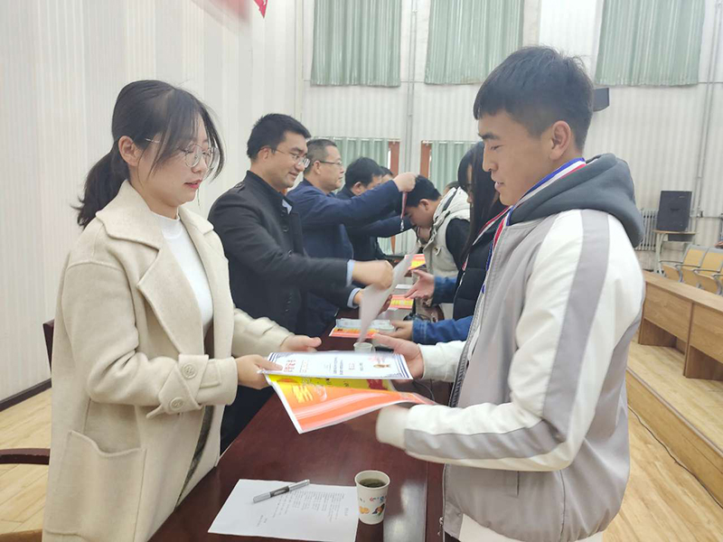 參會(huì)領(lǐng)導(dǎo)為獲獎(jiǎng)學(xué)生頒獎(jiǎng)。