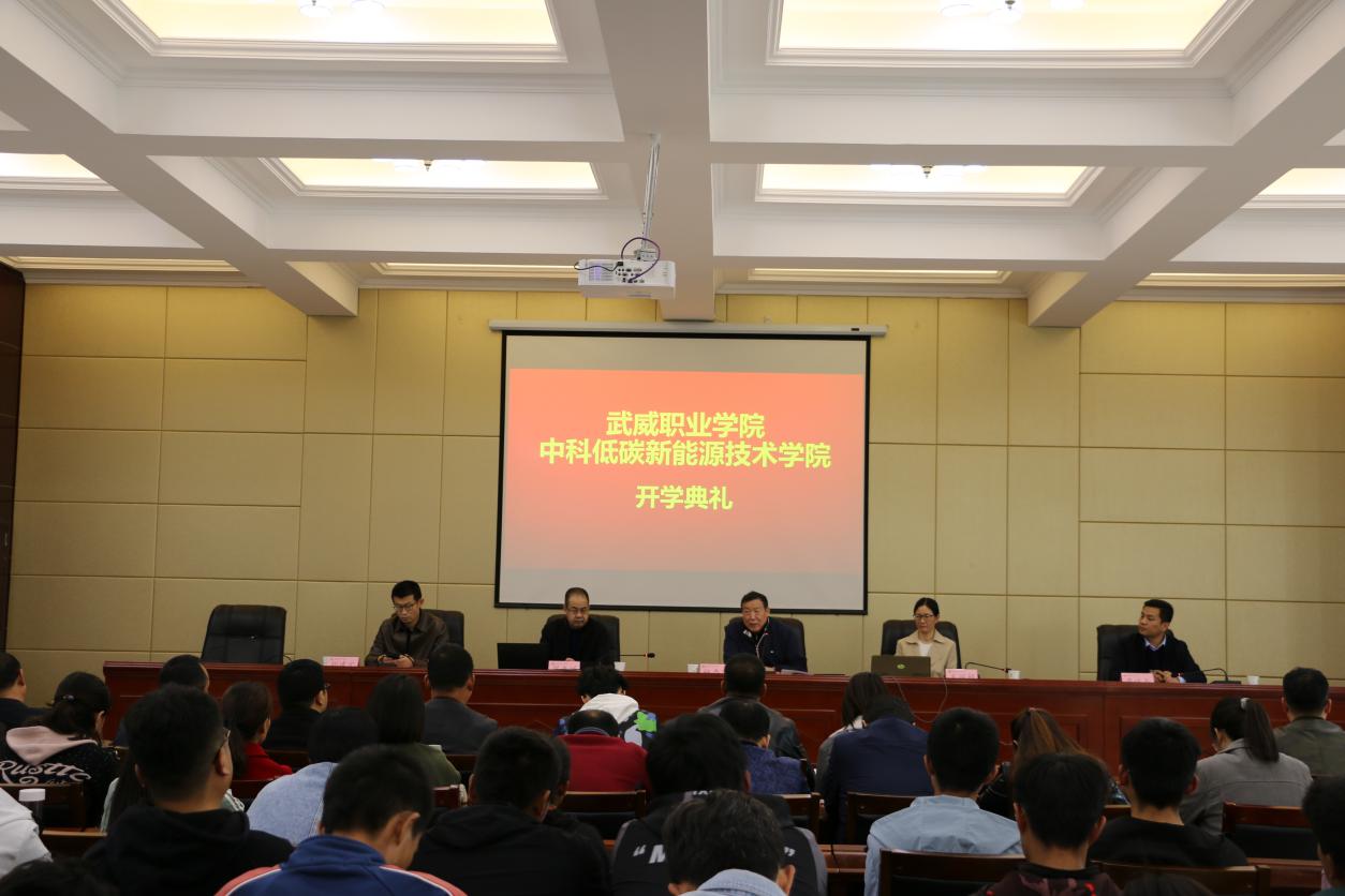 ??10月29日下午,中科低碳新能源技術(shù)學(xué)院在行樹樓北側(cè)報(bào)告廳召開2020級新生開學(xué)典禮。中國科學(xué)院先進(jìn)核能創(chuàng)新研究院高級教育顧問、中科低碳新能源技術(shù)學(xué)院院長楊存忠教授,武威職業(yè)學(xué)院黨委副書記、中科低碳新能源技術(shù)學(xué)院副院長翟存祥教授,中國科學(xué)院上海應(yīng)用物理研究所副研究員、中科低碳新能源技術(shù)學(xué)院院長助理米麗娟博士,中科低碳新能源技術(shù)學(xué)院合作辦學(xué)辦公室主任、能源工程系黨組織書記胡建宏教授,中科低碳新能源技術(shù)學(xué)院合作辦學(xué)辦公室副主任、能源工程系主任黃述杰副教授,中科低碳新能源技術(shù)學(xué)院全體教師及2020級新生參加了此次大會。會議由黃述杰主任主持。