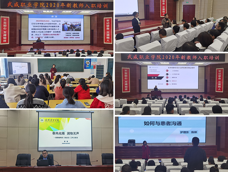 集中培訓(xùn)分為名師講堂、職業(yè)解碼、教學(xué)示范課和職業(yè)拓展四個模塊,分別邀請了學(xué)院黨委副書記、思政名師工作室主持人翟存祥、能源工程系負(fù)責(zé)人胡建宏、創(chuàng)新創(chuàng)業(yè)中心負(fù)責(zé)人顏魯薪、學(xué)工處教師付成榮、護(hù)理系教師趙穎和陳琳、現(xiàn)代農(nóng)業(yè)技術(shù)系教師蔡海作了精彩而又生動的報告。報告以《育師德、樹師風(fēng)、鑄師魂,努力打造師德高尚的新時代教師隊伍——從教師職業(yè)素養(yǎng)說起》《高校教學(xué)活動一般原理與實(shí)踐問題》《基本的教學(xué)設(shè)計文檔》《立足崗位勇?lián)?dāng) 扎根西涼育工匠——從青椒到骨干》《提高教學(xué)效率的有效方法》《如何與患者溝通》《春風(fēng)化雨潤物無聲——高職輔導(dǎo)員(班主任)工作之我見》為主題,使新教師對教師職業(yè)素養(yǎng)、師德師風(fēng)、教育教學(xué)改革、人才培養(yǎng)模式、創(chuàng)新創(chuàng)業(yè)、課堂教學(xué)及班主任工作有了全新的認(rèn)識。
