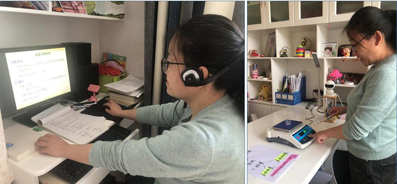 中科低碳新能源學(xué)院積極組織教研活動解決專業(yè)課程在線教學(xué)難題。李春蘭老師在《分析化學(xué)》教學(xué)中通過視頻直播為學(xué)生展示低精度電子天平使用過程,為后續(xù)到校實踐教學(xué)開展打好基礎(chǔ)。