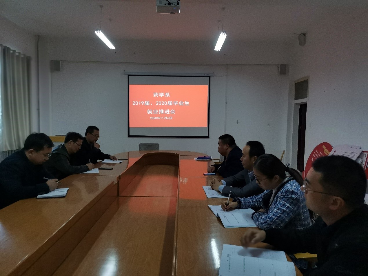 2020年11月6日,藥學(xué)系2020屆畢業(yè)生就業(yè)推進(jìn)會在尚德樓408召開,學(xué)院黨委委員、副院長張開禮,藥學(xué)系黨總支書記、主任魏潤明,藥學(xué)系副主任楊建美及班主任參加會議。