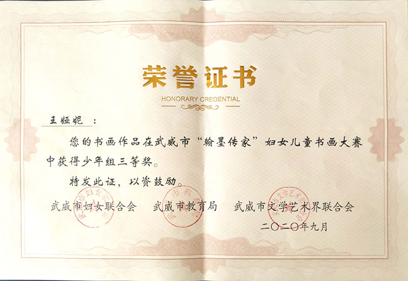 人文藝術(shù)教育系學(xué)生參加武威市“翰墨傳家”婦女兒童書(shū)畫(huà)大賽獲獎(jiǎng)