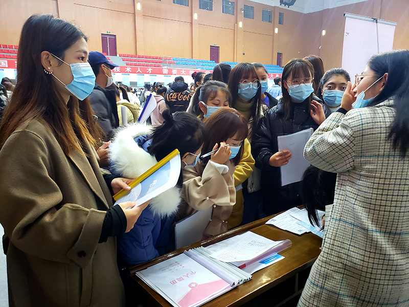 本次招聘會吸引了150多家企業(yè)報名參會,從中挑選110余家專業(yè)契合度高、發(fā)展?jié)摿?、社會信譽好、福利待遇優(yōu)的企業(yè)參加招聘。招聘單位涵蓋了機械機電、能源化工、信息工程、農(nóng)業(yè)技術(shù)、建筑制造、醫(yī)藥衛(wèi)生、教育培訓(xùn)等50多個崗位類別,為畢業(yè)生提供崗位3340多個。招聘會現(xiàn)場人頭攢動,招聘單位積極宣介,同學(xué)們手持簡歷從容自信地展示自己扎實的專業(yè)知識以及良好的精神風(fēng)貌,贏得了招聘單位的贊賞。學(xué)院2021屆畢業(yè)生共有3803名,經(jīng)初步統(tǒng)計,此次招聘會共達成就業(yè)意向2500多名,有1800人在招聘會現(xiàn)場簽訂了就業(yè)三方協(xié)議。此次招聘會按照新冠肺炎疫情常態(tài)化防控要求,逐一核驗來校招聘人員健康綠碼,嚴(yán)格落實體溫檢測、消毒防疫等疫情防控措施。