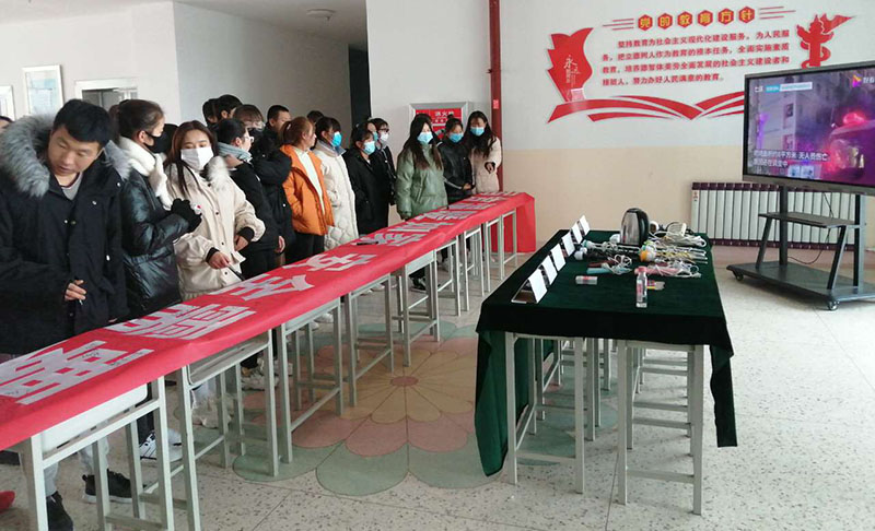在前期大力開(kāi)展宿舍安全隱患排查的基礎(chǔ)上,將在排查過(guò)程中發(fā)現(xiàn)的大功率用電器、劣質(zhì)插線板等存在安全隱患的地方進(jìn)行了實(shí)物及圖片展,以此來(lái)警示同學(xué)們提高宿舍安全意識(shí)。還通過(guò)視頻對(duì)近年來(lái)發(fā)生在高校宿舍安全案例進(jìn)行了展示。