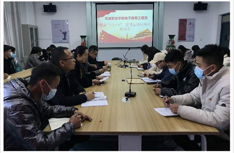 12月9日,各系進(jìn)行了紀(jì)念“12.9”愛國運動座談會,通過師生座談共議前仆后繼、不屈不撓的愛國主義精神,充分認(rèn)識“12.9”愛國運動的歷史意義和深刻內(nèi)涵。