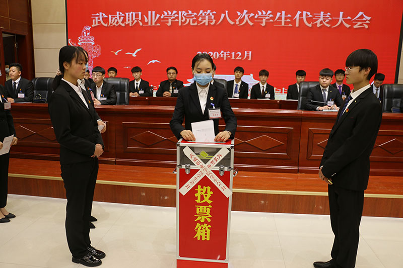 大會審議通過了《武威職業(yè)學院第七屆學生會工作報告》《武威職業(yè)學院學生會章程》,肯定了過去一年工作取得的成績,提出今后一年改革發(fā)展的目標和任務。大會本著“公平、公正、公開”的原則,以無記名投票的形式,通過民主選舉產生了第八屆學生會主席團。