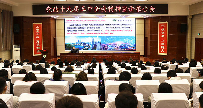 黨委書記、院長趙明為學(xué)院黨員干部和師生宣講黨的十九屆五中全會精神
