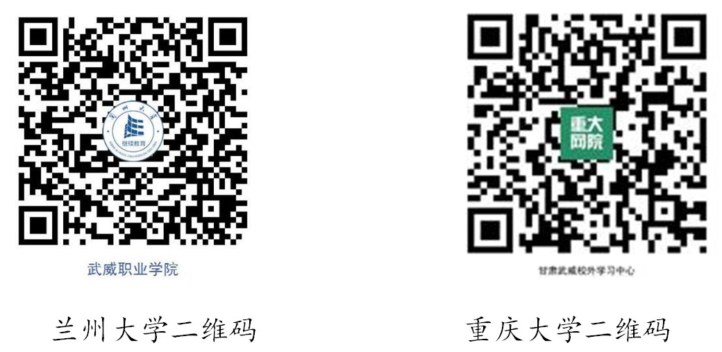 2.蘭州大學(xué)、重慶大學(xué)網(wǎng)絡(luò)教育報名老師電話(劉老師:18993563255)。疫情期間,為減少人員接觸,選擇報考蘭州大學(xué)、重慶大學(xué)的學(xué)員可通過二維碼預(yù)報名,預(yù)報名后等報名人員電話通知后再來學(xué)校進行信息確認和提交報名材料