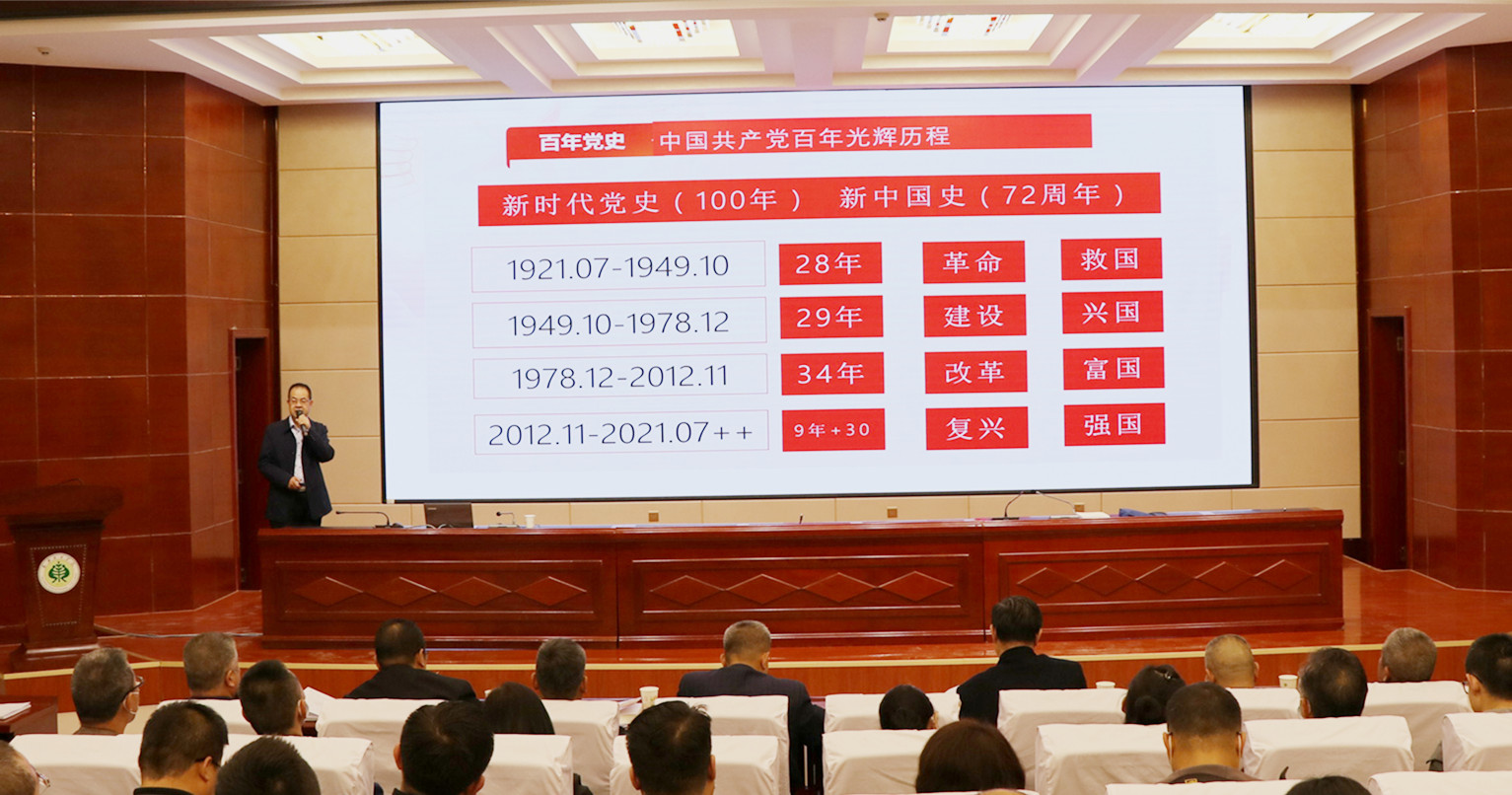 報告中,翟存祥教授帶領(lǐng)大家再次學(xué)習(xí)了習(xí)近平總書記在黨史學(xué)習(xí)教育動員大會上的講話,進(jìn)一步明確了開展黨史學(xué)習(xí)教育的重大意義。報告將中國共產(chǎn)黨百年歷程分為“開天辟地,新民主主義革命時期;改天換地,社會主義革命和建設(shè)時期;翻天覆地,改革開放和現(xiàn)代化建設(shè)時期;驚天動地,中國特色社會主義新時代”四個歷史發(fā)展階段。從只有中國共產(chǎn)黨才能拯救中國,中國人民站起來了;只有中國共產(chǎn)黨才能發(fā)展中國,中國人民富起來了;只有中國共產(chǎn)黨才能治理中國,中國人民強起來了;堅持中國共產(chǎn)黨的全面領(lǐng)導(dǎo),新中國取得巨大成就等四個方面深刻闡述了中國共產(chǎn)黨百年奮斗的光輝歷程和取得的偉大成就,系統(tǒng)梳理總結(jié)了黨帶領(lǐng)人民推進(jìn)革命、建設(shè)、改革的寶貴經(jīng)驗和長期奮斗中鑄就的偉大精神。